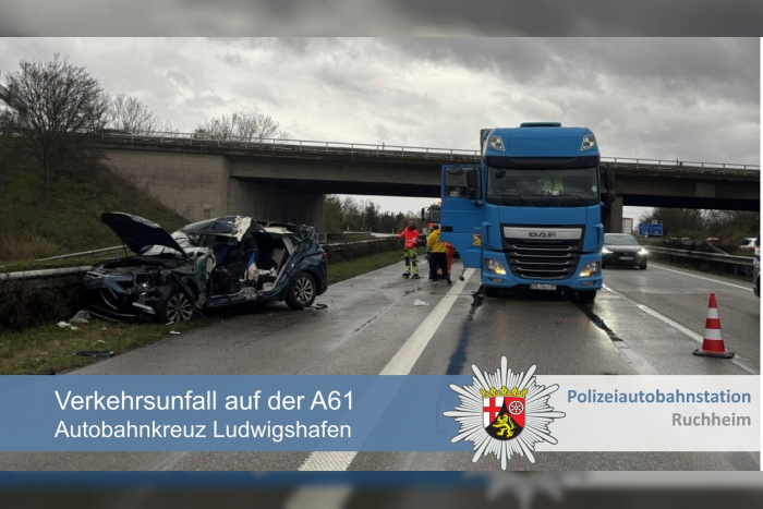 Am Mittwoch, 11.03.26, gegen 14.25 Uhr, ereignete sich auf der A61 in Richtung Koblenz, am Autobahnkreuz Ludwigshafen, ein schwerer Verkehrsunfall.
