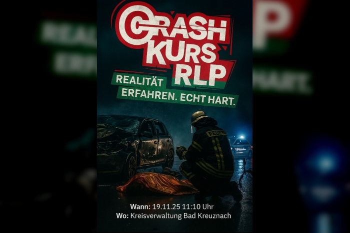Es findet am 19.11.25, um 11.10 Uhr eine Verkehrspräventionsveranstaltung des Polizeipräsidiums Mainz statt. Angeregt durch die BBS Wirtschaft (HBF Bereich Polizei und Verwaltung), die in ihrem Unterricht Verkehrsprävention bearbeiten, wird diese Veranstaltung in der Kreisverwaltung in Bad Kreuznach im großen Sitzungssaal stattfinden.