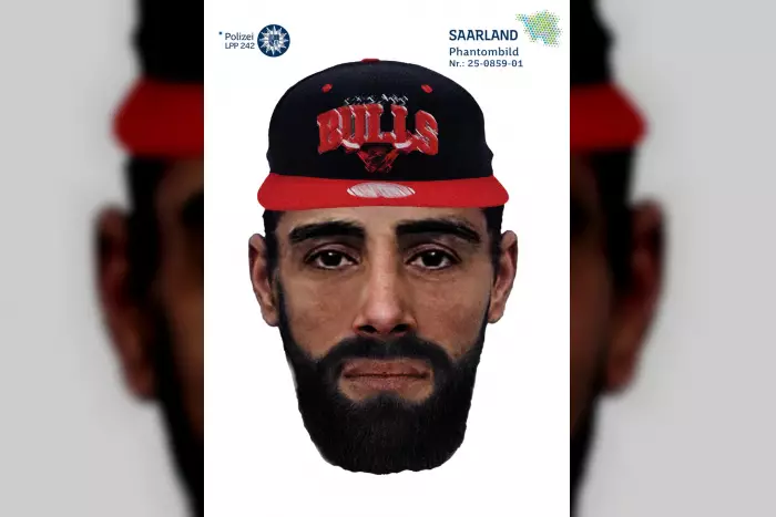 Beschreibung der Person: Ein Mann mit südländischem Aussehen, dunkler Hautfarbe, ungefähr 35 Jahre alt, 165-170cm groß, normale Statur, schwarze kurze Haare, gepflegter schwarzer Vollbart, trug eine dunkle Steppjacke, blaue Jeans und schwarze Turnschuhe. Auf dem Rücken der Jacke befand sich ein heller Aufdruck oder eine Stickerei. Außerdem trug der Täter eine schwarze Basecap mit einem unbekannten Symbol vorne und einem roten Mützenschirm. Es ist möglich, dass der Täter Narben im Gesicht hat.