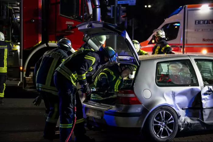 Im morgendlichen Berufsverkehr stießen ein silberner Volkswagen Golf und ein blauer Dacia Logan auf der zentralen Kreuzung in der Nähe des Stummplatzes zusammen. Die beiden Fahrerinnen des VW und des Dacia, 57 und 56 Jahre alt, erlitten nur leichte Verletzungen und konnten die Unfallwracks selbstständig verlassen. Die 60-jährige Beifahrerin im Golf hingegen wurde schwerer verletzt. Obwohl sie nicht eingeklemmt war, konnte sie das Wrack aufgrund ihrer Verletzungen und der Unfallschäden nicht aus eigener Kraft verlassen.