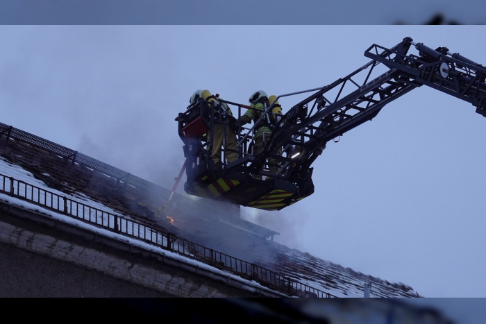 Ein Brand brach im Dachbereich eines leerstehenden Nebengebäudes aus. Einsatzkräfte brachten das Feuer unter Kontrolle und retteten mehrere Pferde.