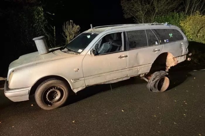 Als die Polizeibeamten und die Feuerwehr gegen 17:20 Uhr am Einsatzort eintrafen, stellten sie fest, dass Kühlflüssigkeit aus dem umgebauten Mercedes austrat. Zu diesem Zeitpunkt wurde das Fahrzeug provisorisch von einem Traktor abgeschleppt.