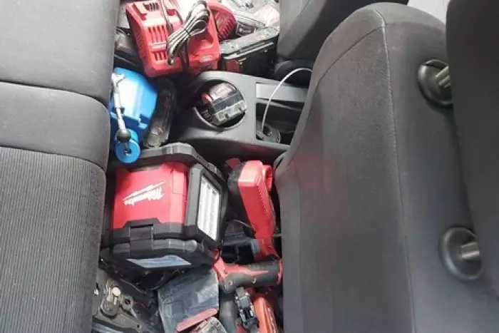 An den Geräten fanden die Polizisten schwedische Aufkleber. Insgesamt wurden mehr als 130 elektronische Geräte wie Bohrmaschinen, Sägen, Akkus und Ladegeräte sowie ein Hochdruckreiniger gefunden. Außerdem wurde ein deutsches Autokennzeichen entdeckt.
