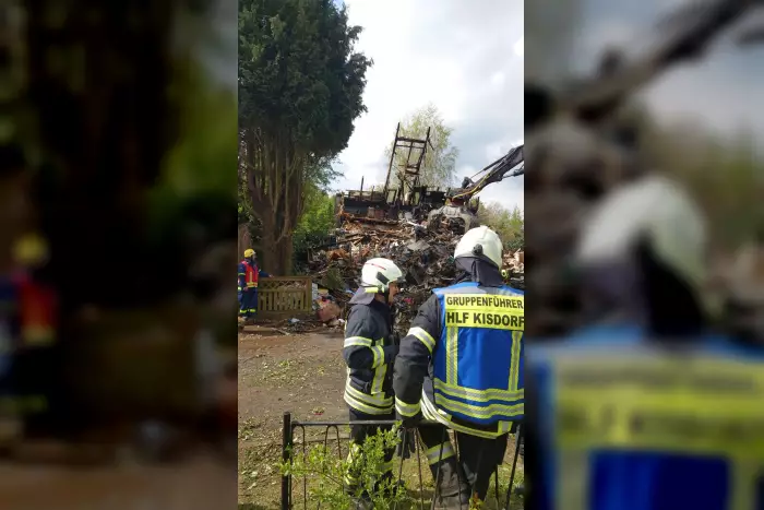 Ein Bagger des Technischen Hilfswerks wurde eingesetzt, um das Gebäude zu zerlegen und auseinanderzutragen, um an alle Glutnester zu gelangen.