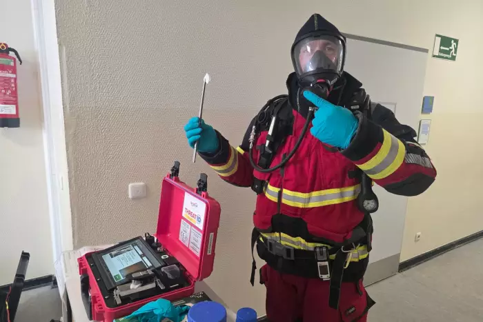 Zur Unterstützung wurde der ABC-Zug des Kreises Segeberg hinzugezogen, der mit moderner Messtechnik zahlreiche Bereiche und Gegenstände im Klassenraum beprobt und analysiert hat.