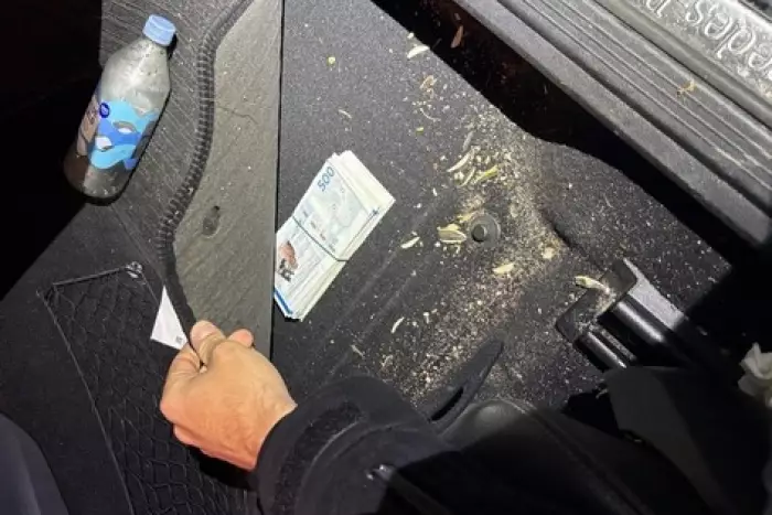 Die Bundespolizisten hatten Zweifel an dieser Aussage und fanden bei der Durchsuchung des Fahrzeugs verstecktes Bargeld im Handschuhfach und unter der Fußmatte (siehe Bild). Auch in der Hosentasche, der Jacke und einer Umhängetasche wurde Geld entdeckt.