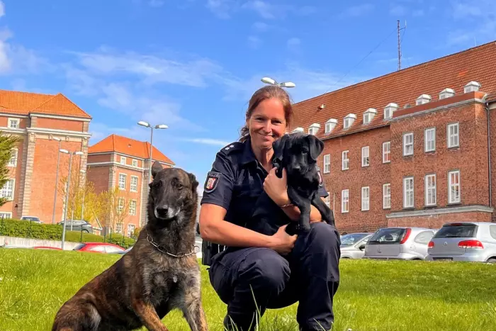 Seit einer Woche wird die Labrador-Hündin von ihrer speziell geschulten Diensthundeführerin Stephanie Pälicke betreut. Naira wird bereits im Welpenalter spielerisch trainiert und soll in etwa einem Jahr die Prüfung als Brandmittelspürhund bestehen. Stephanie, ihr Frauchen, gehört zur Organisationseinheit Brand, die dem Kommissariat 11 der Bezirkskriminalinspektion Kiel angehört. Nach Abschluss der Ausbildung wird Hündin Naira die neunjährige Schäferhündin Raja ablösen, die dann ihren Ruhestand im Haus ihrer Diensthundeführerin Stephanie genießen darf.