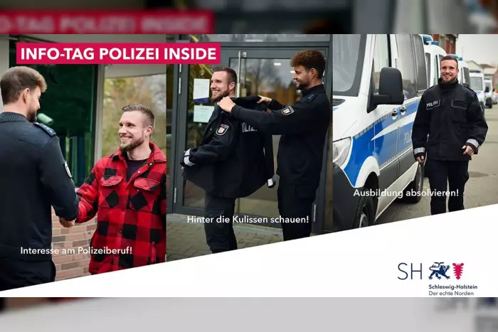 Nach dem großen Erfolg des Events „Polizei Inside“ im April in Kiel lädt die Polizeidirektion Kiel erneut potenzielle Nachwuchskräfte zu einer Informationsveranstaltung ein. Angesprochen sind alle Interessierten im Alter zwischen 15 und 47 Jahren.