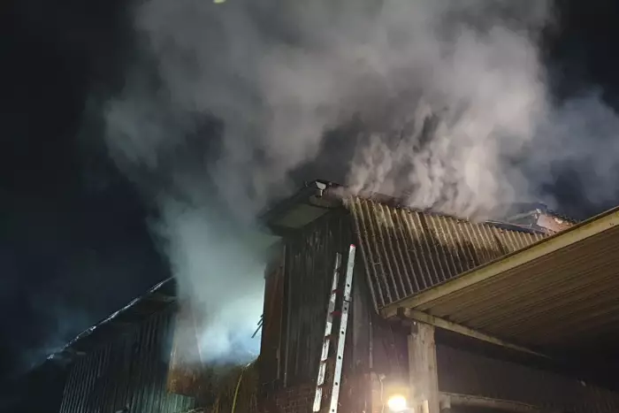 Ein Feuer in einem landwirtschaftlichen Gebäude in Jahrsdorf wurde am Sonntagabend gemeldet. Zwei Anwohner wurden verletzt, der Einsatz dauerte bis 03:00 Uhr an.