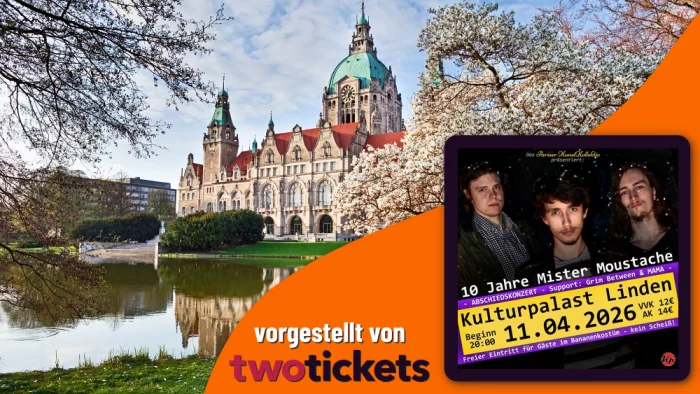 Mister Moustache feiert zehn Jahre mit einem Abschiedskonzert und einem traditionellen Bandgeburtstag im Kulturpalast Linden. Ein gemischtes Set aus allen zehn Jahren und Überraschungen erwarten die Gäste.
