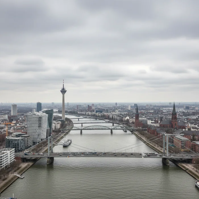 Am 18. April 2026 wird in Düsseldorf ein kalter, bewölkter Tag mit Temperaturen zwischen -2.3°C und 7.1°C erwartet. Es bleibt niederschlagsfrei, und der Wind weht mit 26.3 km/h.