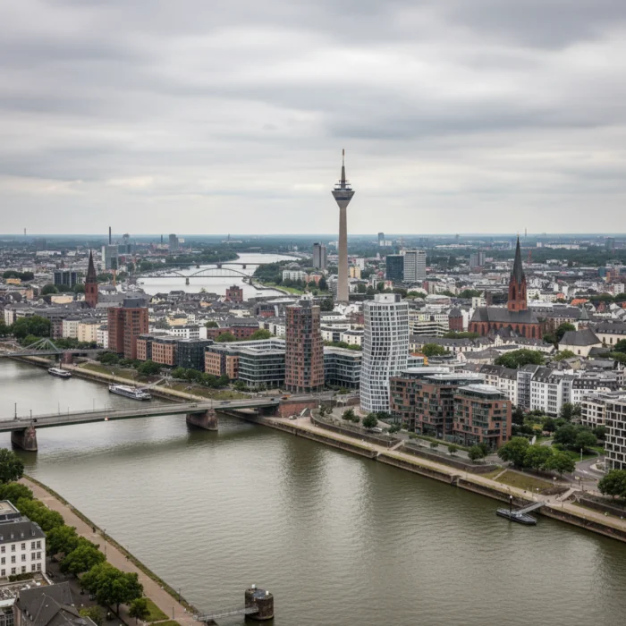 In Düsseldorf wird am Samstag, 4. April 2026, kühles Wetter mit Temperaturen um den Gefrierpunkt und einer hohen Regenwahrscheinlichkeit von 86% erwartet. Am Abend kann leichter Schneefall auftreten.