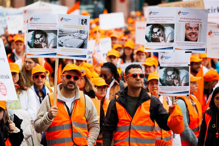 Bei einer zentralen Kundgebung des Marburger Bundes in Frankfurt am Main forderten Tausende Ärztinnen und Ärzte mehr Geld und bessere Arbeitsbedingungen. Die Teilnehmer machten mit Trillerpfeifen und Schildern auf Personalmangel und Überlastung aufmerksam. Die Forderungen der Gewerkschaft liegen seit Monaten auf dem Tisch, sagte die Bundesvorsitzende Susanne Johna.