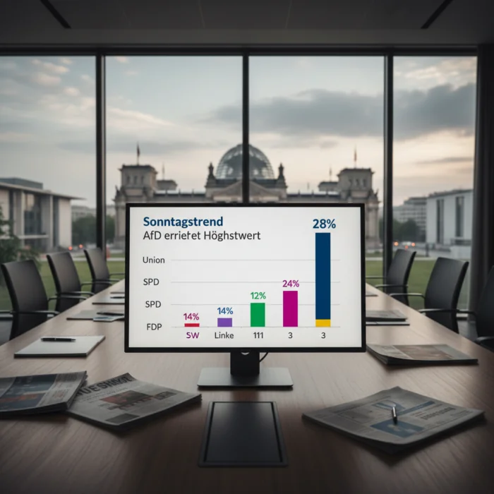 Die AfD hat im aktuellen Sonntagstrend des Meinungsforschungsinstituts Insa einen neuen Höchstwert erreicht. In der Umfrage, die wöchentlich im Auftrag einer großen Sonntagszeitung durchgeführt wird, kommt die Partei auf 28 Prozent.
