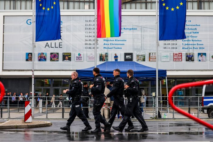 Immer wieder hätten größere Personengruppen mit zum Teil mehreren Hundert Personen durch gewaltsame Störaktionen versucht, die Delegierten an der Teilnahme zu hindern oder Sperrstellen zu durchbrechen, teilte die Polizei am Samstagabend mit. «Im Rahmen dieser gewalttätigen Aktionen mussten unsere Kolleginnen und Kollegen wiederholt Gebrauch vom Schlagstock und Reizgas machen.» Auch Demonstranten erlitten Verletzungen, etwa durch Pfefferspray. Einige Delegierte wurden unter massivem Polizeischutz zu Fuß in die Grugahalle geleitet, bedrängt von Demonstrierenden.