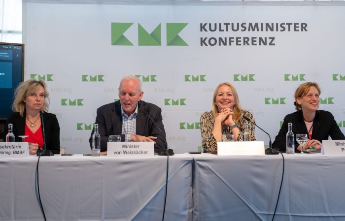 Seit Monaten drängen die Länder beim Bund auf Klarheit über die Finanzierung der geplanten Neuauflage eines milliardenschweren Förderprogramms. Die KMK möchte vom Bund ab 2025 jährlich mindestens 1,3 Milliarden Euro für die Finanzierung und Weiterentwicklung der digitalen Infrastruktur. «Wir erwarten für Anfang Juli eine klare Äußerung des Bundes, wie hoch der Finanzierungsanteil des Bundes sein wird», sagte die KMK-Präsidentin.