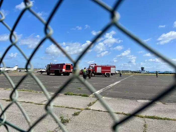 Die Frauen wurden aufgehoben und auch mit einem Polizeiauto weggebracht. Um das Geschehen vor neugierigen Blicken abzuschirmen, positionierten Feuerwehrleute zwei große Löschwagen neben dem Privatjet.