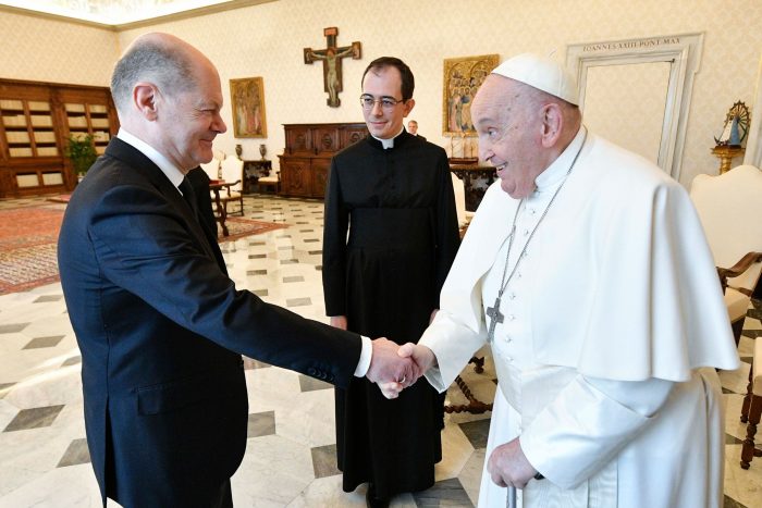 Für den Kanzler war es die erste längere Begegnung mit dem 87 Jahre alten Pontifex. Die beiden hatten sich aber bereits Anfang vergangenen Jahres am Rande der Beisetzung des früheren deutschen Papstes Benedikt XVI. getroffen. Franziskus ist auch Staatsoberhaupt des Kirchenstaats in Rom.