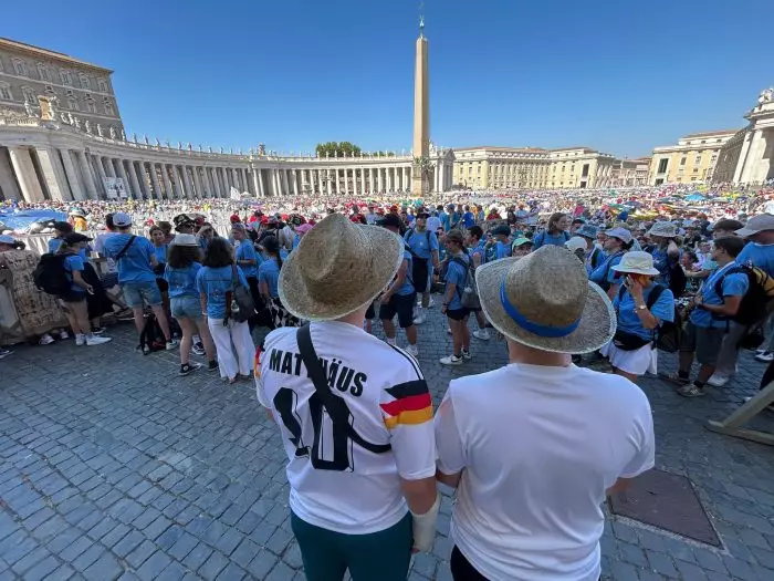 Ein großes Fest auf dem Petersplatz im Hochsommer: Bei 37 Grad Hitze bemüht sich Franziskus um den katholischen Nachwuchs. Die meisten davon kommen aus Deutschland.