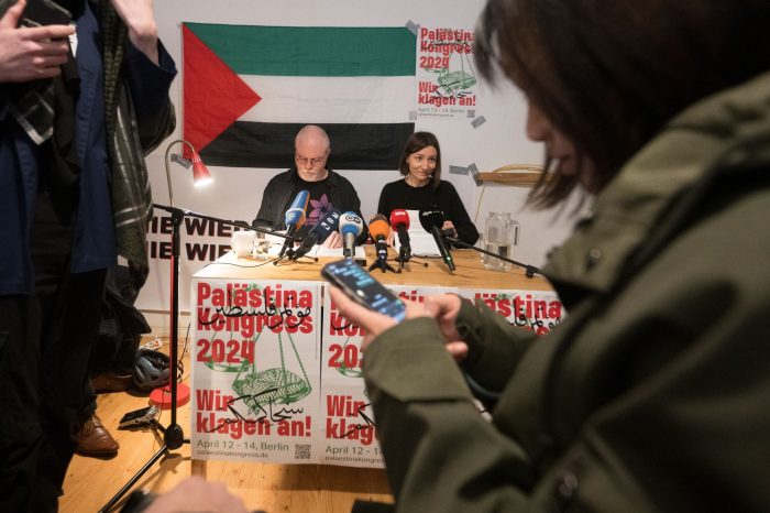 Bei der Pressekonferenz der Veranstalter in einem kleinen Raum des «Internationalistischen Büros» im Wedding war die Stimmung teilweise auch unter den Journalisten aufgeladen, einige kritisierten sich gegenseitig. Die Veranstalter hatten die palästinensische Flagge zunächst falsch aufgehängt, korrigierten ihren Fehler aber, bevor sie Statements vorlasen.