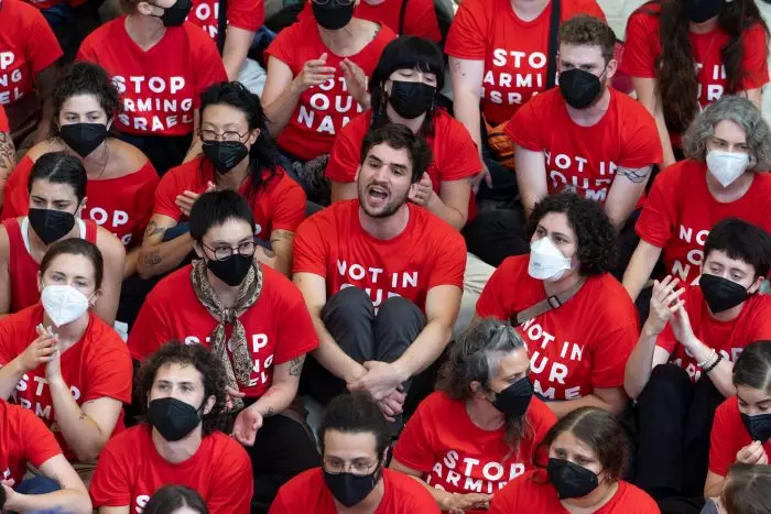 Am Tag vor Netanjahus Rede wurden mehrere Demonstranten von der Polizei festgenommen, die im Gebäude des US-Parlaments gegen den Gaza-Krieg protestiert hatten. Obwohl sie das Cannon House Office Building legal betreten hatten, war der Protest dort nicht erlaubt. Da die Demonstranten sich weigerten, den Protest zu beenden, wurde das Gebäude geräumt. In den vergangenen Monaten hatte es dort bereits ähnliche Protestaktionen gegeben.