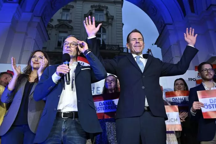 Es ist das erste Mal in Österreich, dass die Rechtspopulisten bei einer landesweiten Wahl an erster Stelle liegen. Laut vorläufigem Ergebnis erhält die FPÖ 25,5 Prozent der Stimmen. Die konservative ÖVP erreicht 24,7 Prozent. Die sozialdemokratische SPÖ folgt mit 23,3 Prozent.