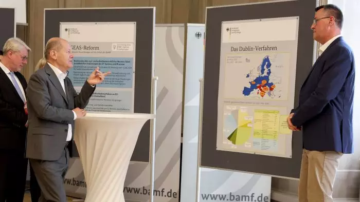 Insgesamt mahnte Scholz mehr Tempo bei der Bearbeitung von Asylanträgen an. Dies sei entscheidend, auch für die Akzeptanz in der Bevölkerung. «Wir müssen dafür Sorge tragen, dass wir State of the Art sind», sagte der Kanzler mit Blick auf die Digitalisierung. Es müsse dafür Sorge getragen werden, dass die digitale Geschwindigkeit hoch bleibe, auch künstliche Intelligenz spiele eine Rolle. Eine entscheidende Frage sei die Ausstattung des Bundesamtes mit ausreichend Personal. Sowohl im zurückliegenden Bundeshaushalt als auch im neuen Haushalt sei dies berücksichtigt worden.