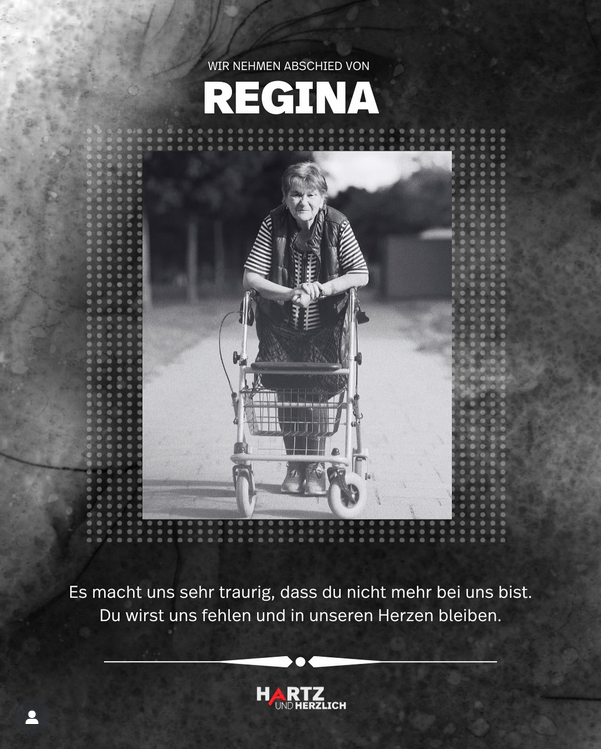 Die „Hartz und herzlich“-Gemeinde trauert um Regina. Die beliebte Teilnehmerin der RTLZWEI-Sozialdoku ist gestorben – Fans und Weggefährten nehmen mit zahlreichen emotionalen Botschaften Abschied von einer Frau, die mit ihrer Offenheit viele berührt hat.