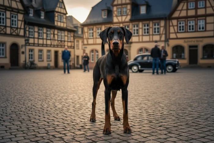 Der Dobermann, eine deutsche Hunderasse, ist bekannt für seine Intelligenz und Vielseitigkeit. Ursprünglich als Arbeits- und Wachhund gezüchtet, wird er heute auch in vielen Dienstbereichen eingesetzt, darunter Polizei und Rettungsdienste.