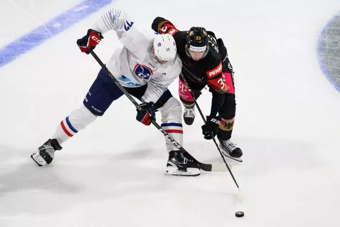 Die Fähigkeiten der Profis aus Nordamerika wurden vor 4503 Zuschauern schnell deutlich. In Überzahl bereitete Peterka von den Buffalo Sabres geschickt den Führungstreffer von Dominik Kahun vor. Der Stürmer vom SC Bern brachte die DEB-Auswahl nach sechs Minuten mit einem präzisen Schuss in Führung. Parker Tuomie (18.), der von Straubing nach Köln wechseln wird, und Maxi Kastner aus München erhöhten nur 14 Sekunden später auf 3:0 für eine starke DEB-Auswahl. Hugo Gallet aus Frankreich verkürzte kurz vor der ersten Drittel-Pause auf 1:3 (20.).