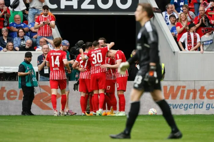 Grifo hätte nach nicht einmal einer Viertelstunde und ebenfalls nach guter Vorarbeit des Japaners Doan schon auf 2:0 erhöhen können, traf aber nur den linken Pfosten. Schalke-Keeper Schwolow verhinderte vor den Augen der früheren Bundestrainer Joachim Löw und Jürgen Klinsmann auf der Tribüne ein Debakel, kassierte beim 0:3 durch Höler aber auch einen Schuss durch die Beine. Ginter sorgte für den Endstand. Freiburg bleibt auf Kurs Europa, für Schalke gab’s statt des erhofften Befreiungs- einen empfindlichen Rückschlag.