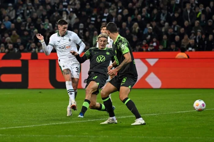Nach dem Seitenwechsel wurde es wilder. Wolfsburgs Jonas Wind scheiterte am Pfosten und schoss knapp vorbei. Auf der Gegenseite nutzten Manu Koné und Cvancara Kontergelegenheiten nicht. Wolfsburg war nun eigentlich die bessere Mannschaft, doch mitten in eine Druckphase der Mannschaft von Trainer Niko Kovac hinein, sorgte Honorat für das 3:0. Auch beim wuchtigen Schuss des 27-Jährigen sah Casteels nicht gut aus.