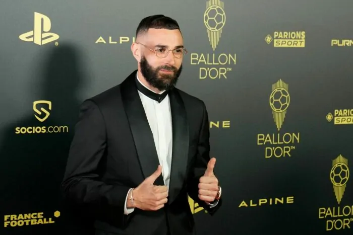 Mit einer extravaganten Brille und im feinen schwarzen Anzug betrat Karim Benzema die Bühne des Théâtre du Châtelet und nahm sichtlich bewegt den Goldenen Ball entgegen. Der Torjäger von Real Madrid wurde erwartungsgemäß mit dem prestigeträchtigen Pokal ausgezeichnet.