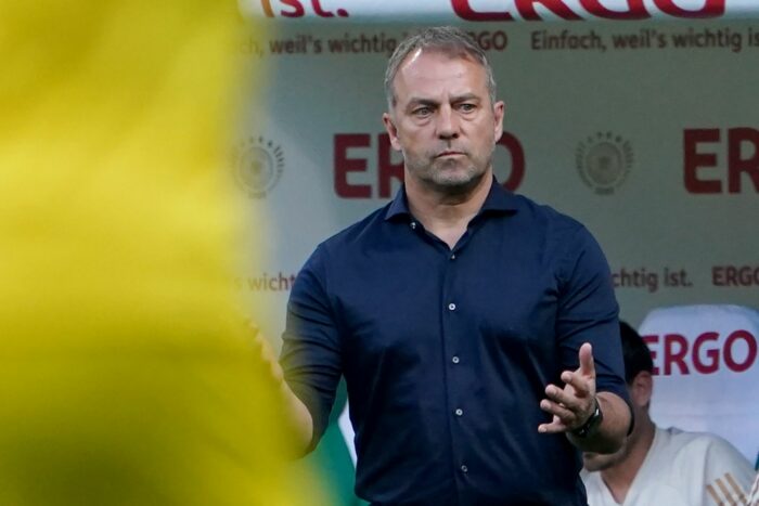 Der Druck auf Hansi Flick nimmt zu. Bohrende Fragen prasseln nach dem Ukraine-Spiel auf den Trainer ein, der mit einem 2006-Vergleich der Krise ein Jahr vor der EM selbst eine neue Tragweite gibt.