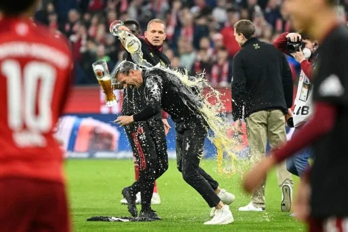 Die erste Bierdusche bekam Julian Nagelsmann früh nach dem Schlusspfiff ab. Der Trainer und die Spieler des FC Bayern feierten die zehnte Meisterschaft in Serie. «Wir sind richtig happy», sagte Kapitän Manuel Neuer. «Das war für uns am Ende wichtig, dass wir es nach dem Ausscheiden gegen Villarreal vernünftig abschließen. Es waren 75.000 Zuhause in der Allianz Arena. Das wollten wir uns auf gar keinen Fall nehmen lassen.» Im DFB-Pokal und in der Champions League waren die Bayern in dieser Saison ausgeschieden.