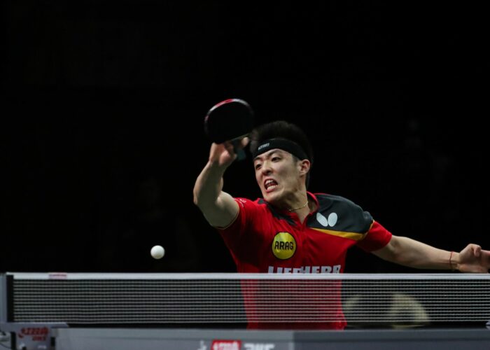 Dang Qiu gehört erst seit dem vergangenen Jahr zur Weltspitze. Da gewann er in München den EM-Titel im Einzel, stieg zum Top-10-Spieler der Weltrangliste auf und führte eine ersatzgeschwächte deutsche Mannschaft ins Endspiel der Team-WM. Sein Jugendidol Wang Hao saß am Donnerstag als Coach von Fan Zhendong in der Trainerbox. Der 39-Jährige wurde 2009 Weltmeister.