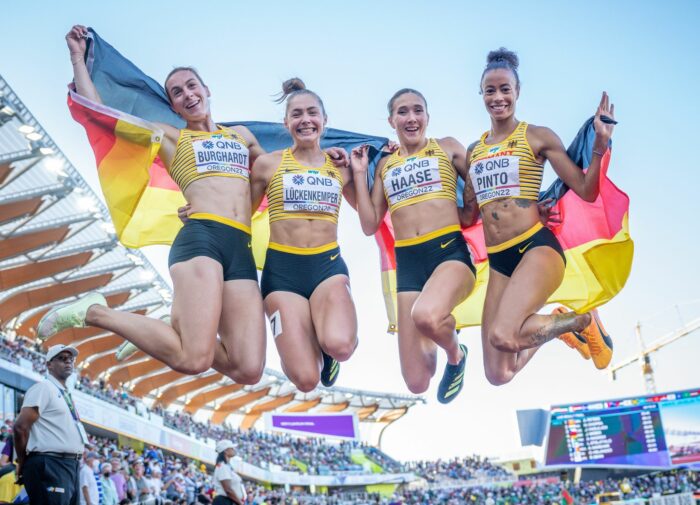 Die Sprinterinnen schlugen derweil nach den vielen deutschen Enttäuschungen im US-Bundesstaat Oregon im Ziel immer wieder ungläubig die Hände vor die Gesichter und lagen sich dann freudetrunken in den Armen. Bei der Siegerehrung strahlte das Quartett auf dem Podest und präsentierte stolz die Bronzemedaillen. «Wir haben im Vorfeld die ganze Zeit vom Glück der Tüchtigen gesprochen, und heute war es endlich mal mit uns», sagte Deutschlands beste Sprinterin Gina Lückenkemper. «Endlich, endlich!», fügte die EM-Zweite von 2018 im ZDF geradezu beschwörend an.
