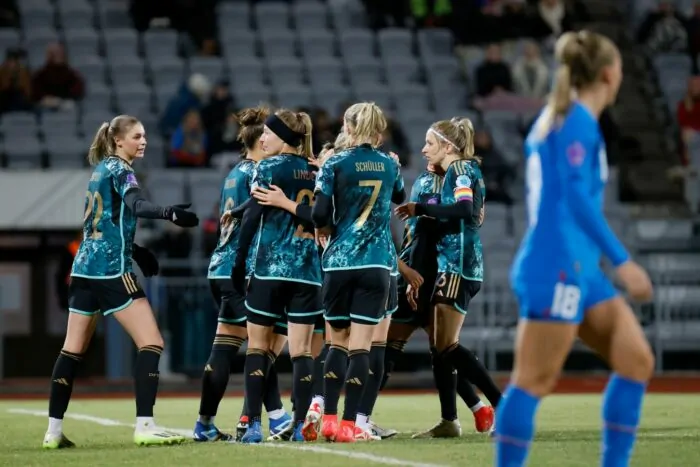 Deutschland dominierte, Island zog sich weit zurück. Doch je länger das Spiel lief, desto einfallsloser wirkten die Gäste. Wie so oft in den vergangenen Monaten fehlten gegen einen tief verteidigenden Gegner Präzision und Ideen, Torchancen gab es kaum noch. Kapitänin Svenja Huth drosch zwar eine Flanke ans Lattenkreuz, der Versuch wirkte aber eher unbeabsichtigt (32.).