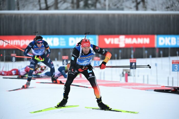 In einem wilden Rennen werden die deutschen Biathleten in Ruhpolding Zweite mit der Staffel. Benedikt Doll muss zweimal in die Strafrunde, trotzdem wird am Ende gejubelt.