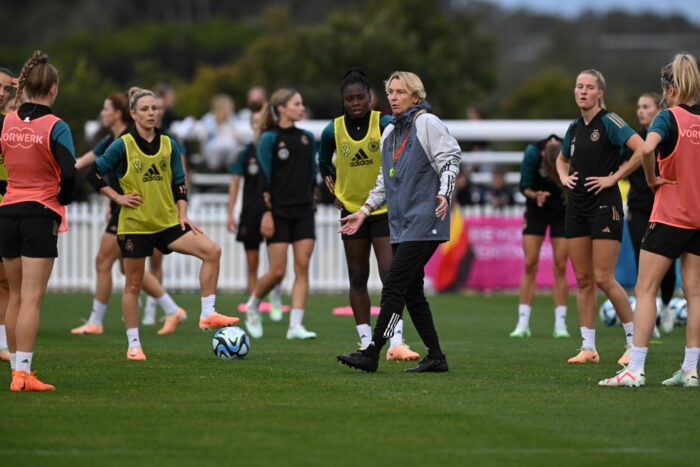 Besonders gebraucht wird da eine zweikampfstarke Spielerin wie Lena Oberdorf. Die 21-Jährige stand erstmals seit ihrer vor gut einer Woche zugezogenen Muskelverletzung im Oberschenkel wieder auf dem Trainingsplatz – auch wenn sie nur individuelle Übungen absolvierte. Weiterhin fehlt in der letzten Vorbereitungsphase aber Abwehrchefin Marina Hegering (ebenfalls VfL Wolfsburg) wegen ihrer Fersenprellung.