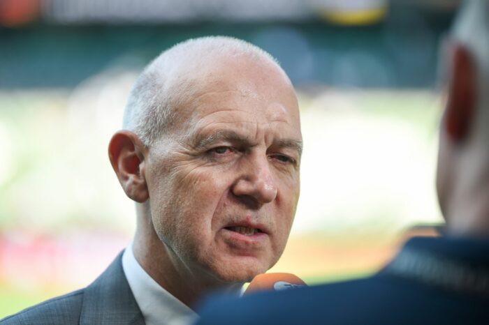 Dieses Mal stand Bernd Neuendorf nicht im internationalen Flughafen von Doha, sondern vor einer golden anmutenden Zierwand seines wieder krachend bei einer WM gescheiterten Verbandes.