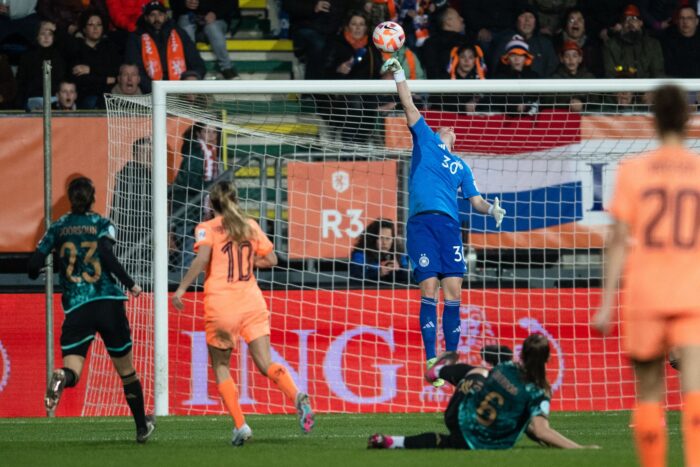 Doch neben dem Ergebnis und der Selbstkritik gab es noch etwas, was am Ende des Abends in Sittard uneingeschränkt positiv war: die Leistungen der beiden deutschen Torhüterinnen. «Sie haben uns den Hintern gerettet», sagte Kapitän Alexandra Popp über die beiden Spielerinnen des Spiels. Merle Frohms musste nach einer überragenden ersten Halbzeit mit Rückenproblemen raus. Ann-Katrin Berger hielt nach der Pause aber genauso stark. «Das waren zwei sehr gute Leistungen. Aber wir wissen, dass wir da sehr gut besetzt sind», sagte Bundestrainerin Martina Voss-Tecklenburg. Popp drückte es noch deutlicher aus: «Wir müssen uns keine Sorgen machen, wer bei uns zwischen den Pfosten steht.»