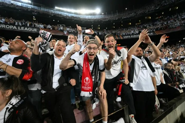 Der Club hatte zuvor mitgeteilt, dass offiziell 5000 Eintrittskarten an deutsche Fans verkauft worden seien, wie dies die Europäische Fußball-Union UEFA vorschreibt. Tatsächlich waren aber wohl rund 30.000 Anhänger der Eintracht im Camp Nou, das knapp 100.000 Plätze bietet. Vieler Tickets für Deutsche stammten wohl aus Wiederverkäufen und von Reisebüros, spekulierten spanische Medien. Angesichts der starken deutschen Fan-Präsenz hatte einige Barça-Anhänger aus Protest während des Spiels für zehn Minuten ihre Plätze verlassen.