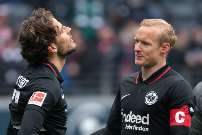 Die Partie verlief hitzig, emotional und abwechslungsreich. Ansgar Knauff, der schon im Hinspiel mit einem Traumtor hervorstach, startete ein sehenswertes Solo, doch der Abschluss geriet diesmal zu harmlos. Was man von Borrés Schuss gar nicht behaupten konnte: Der zuvor unglücklich agierende Kolumbianer nahm aus gut 20 Metern Maß und vollendete wuchtig zum 2:0.