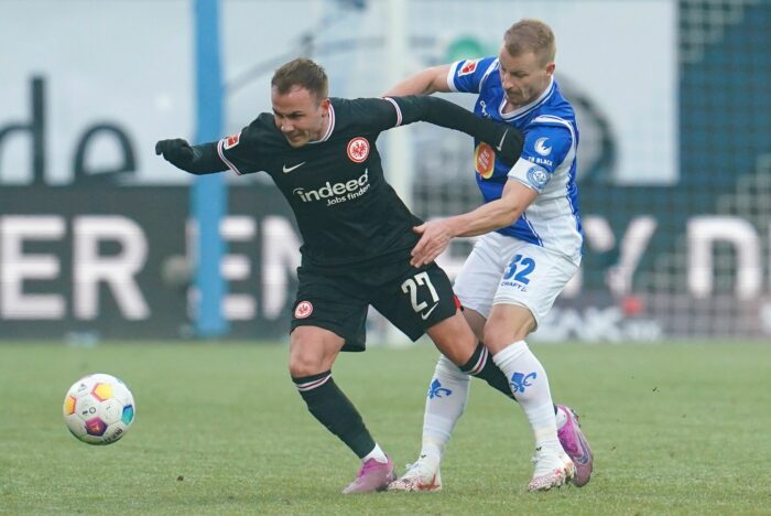 Der Abstiegskandidat aus Darmstadt kämpfte wie gewohnt und beteiligte sich an allen Zweikämpfen, jedoch hatte er im gegnerischen Strafraum kaum Erfolg. Justvan konnte daran zunächst wenig ändern, obwohl er einige kluge Pässe spielte. Der zweite Treffer der Frankfurter kurz nach der Pause wurde erneut von Ebimbe vorbereitet: Nach einem missglückten Schussversuch des agilen Neuzugangs Sasa Kalajdzic war Knauff zur Stelle.