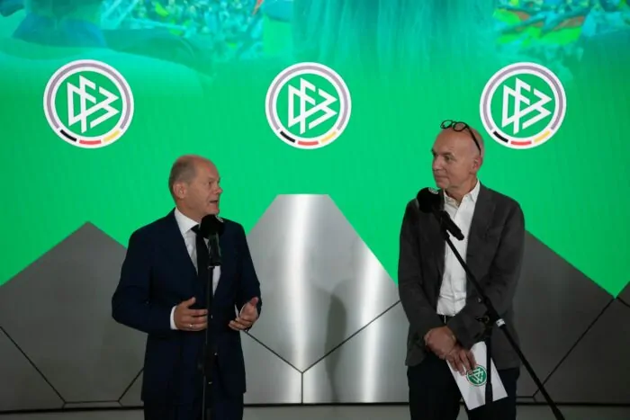 Verbandspräsident Bernd Neuendorf kündigte eine Debatte im Deutschen Fußball-Bund über die Angleichung der Prämien an. «Ich bin zumindest bereit, in unseren Gremien mit den Vertretern und Vertreterinnen der A-Nationalmannschaften darüber zu reden, ob unser über Jahrzehnte gewachsenes Prämiensystem noch zeitgemäß ist (…) und es gegebenenfalls auch angepasst werden kann», sagte Neuendorf nach der Gesprächsrunde mit Scholz, DFB-Geschäftsführer Oliver Bierhoff sowie Vizepräsidentin Celia Sasic.