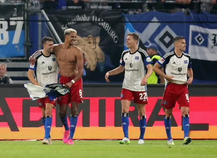 Vieles wirkte erstklassig an diesem lauen Sommerabend in Hamburg. Drei Wochen vor dem Bundesliga-Start hatte die Deutsche Fußball Liga wie in der Saison 2021/22 die beiden Großclubs ins Eröffnungsspiel geschickt, die beide dringend aufsteigen wollen. Die 57.000 Zuschauer im ausverkauften Volksparkstadion feierten vom Anpfiff weg die Rückkehr ihrer Teams – die Hamburger Anhänger immerhin in den Anfangsminuten deutlich mehr.