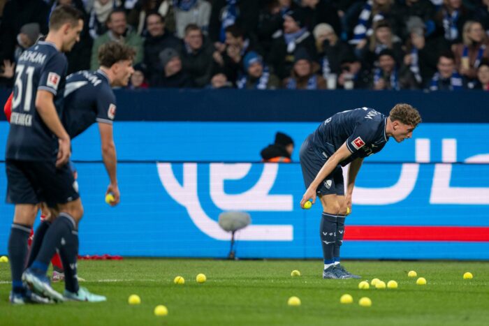 In ganz Deutschland machen Fans ihre Ablehnung gegen einen DFL-Investor deutlich. Mancherorts müssen Spiele unterbrochen werden. In Bochum nutzt ein Profi ein Wurfgeschoss für einen Snack.