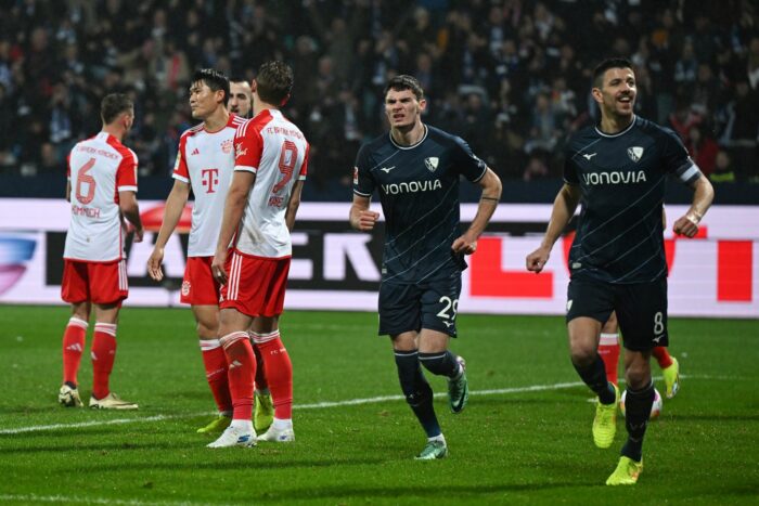 Die Bochumer begannen sehr mutig, aber nach zehn Minuten übernahmen die Bayern die Kontrolle über das Spiel – und sofort fiel das 0:1. Ivan Ordets konnte einen Kopfball von Matthijs De Ligt noch von der Linie kratzen, doch Sekunden später scheiterte Musiala erst an Riemann, bevor er im Nachschuss unter die Latte traf. Fünf Minuten später hätte Kane bereits erhöhen sollen, aber er verzog unerwartet kläglich, als er frei vor Riemann stand. Er hätte den Ball auch zu Thomas Müller spielen können, der mitgelaufen war.