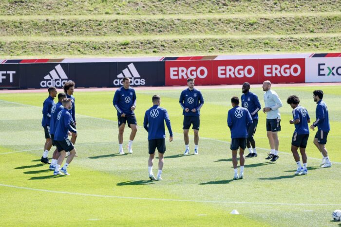 Nach einem Jahr mit Qualifikationsspielen gegen die zweite und dritte Klasse im europäischen Fußball sind die Partien gegen die angestachelte Squadra Azzurra, am 7. Juni in München gegen England, in Budapest gegen Ungarn (11. Juni) sowie in Mönchengladbach wieder gegen Europameister Italien (14. Juni) echte Standortbestimmungen. «Das sind keine Test- oder Freundschaftsspiele», sagte Rückkehrer Joshua Kimmich, dessen Platz in der Mittelfeldzentrale neben Leon Goretzka erstmal gesichert ist. «Danach sieht man ein Stück weit besser, wo wir stehen», bemerkte der 27-jährige Kimmich.